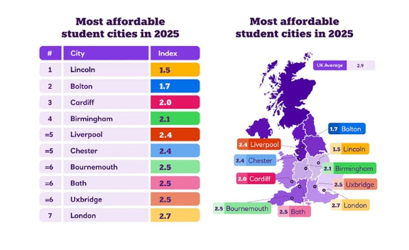 Which UK city is most affordable* for students?