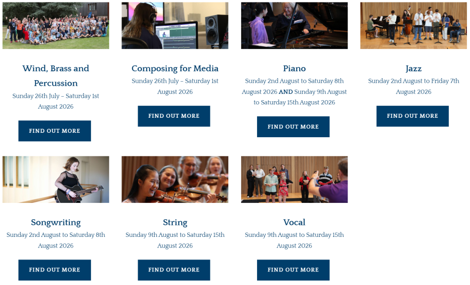 안타깝지만 Wells Cathedral School의 여름방학 음악프로그램은 모든 사람에게 개방되는 프로그램은 아닙니다. 관악/타악기 주간, 재즈 주간, 현악 주간, 피아노 주간으로 나눠지는데요, 어느 영역이든 일정수 준 이상의 음악 실력이 필요합니다. 타임테이블에서 볼 수 있는 것처럼 음악, 음악, 음악이다보니 기본기 이상의 음악적 기술과 소양이 필요하다고 할 수 있습니다. 한국을 기준으로 생각한다면 예중이나 예고를 생각하거나 대학교를 영국 혹은 유럽에서 음악 전공으로 생각하는 학생들에게 적합합니다.